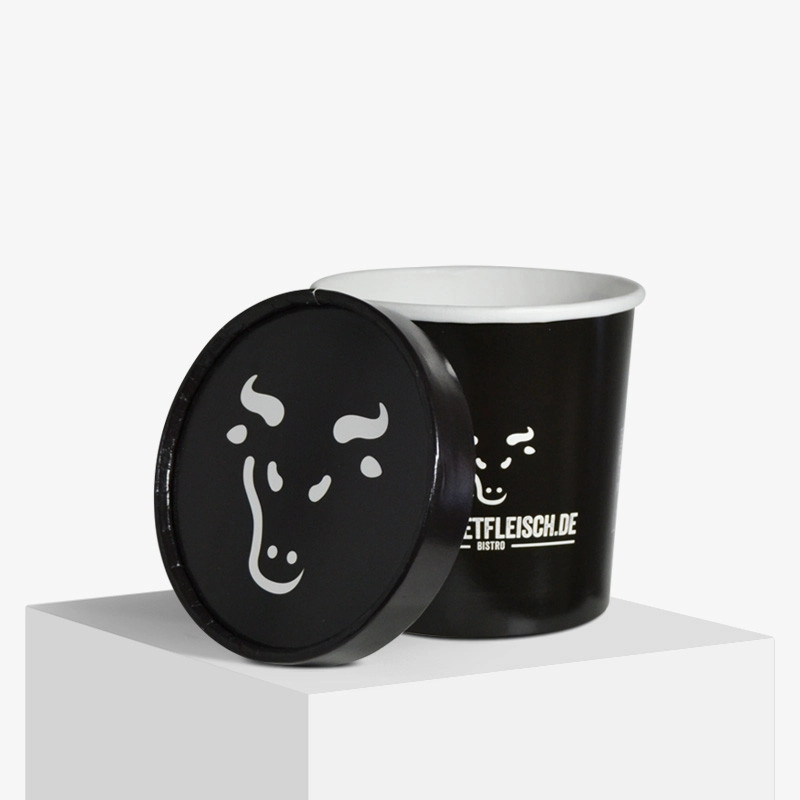 Food cups with lids are the perfect way for you to use your customers to tell the world about you and your products without having to spend any extra money on marketing. You can design on the whole surface both of the lids and cups to tell your story and show what your brand has to offer. The branded soup cups with lids are made with a glossy surface that makes the cups feel robust and the design gets a bright look that will attract attention from the first second.