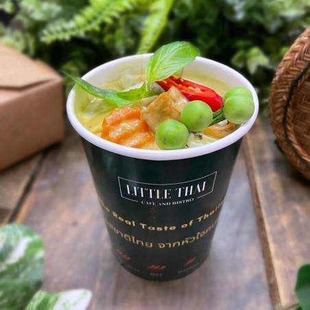 The cups and lids are coated with a small layer of PET plastic to be able to hold liquids and still keep the cup robust and so it doesn’t leak. The small layer is not strong enough to be able to contain liquid with high amounts of alcohol or fat, so if you are looking to serve this in the branded soup containers with lids then we are able to reinforce the coating to be able to contain it. But it is not a standard feature.